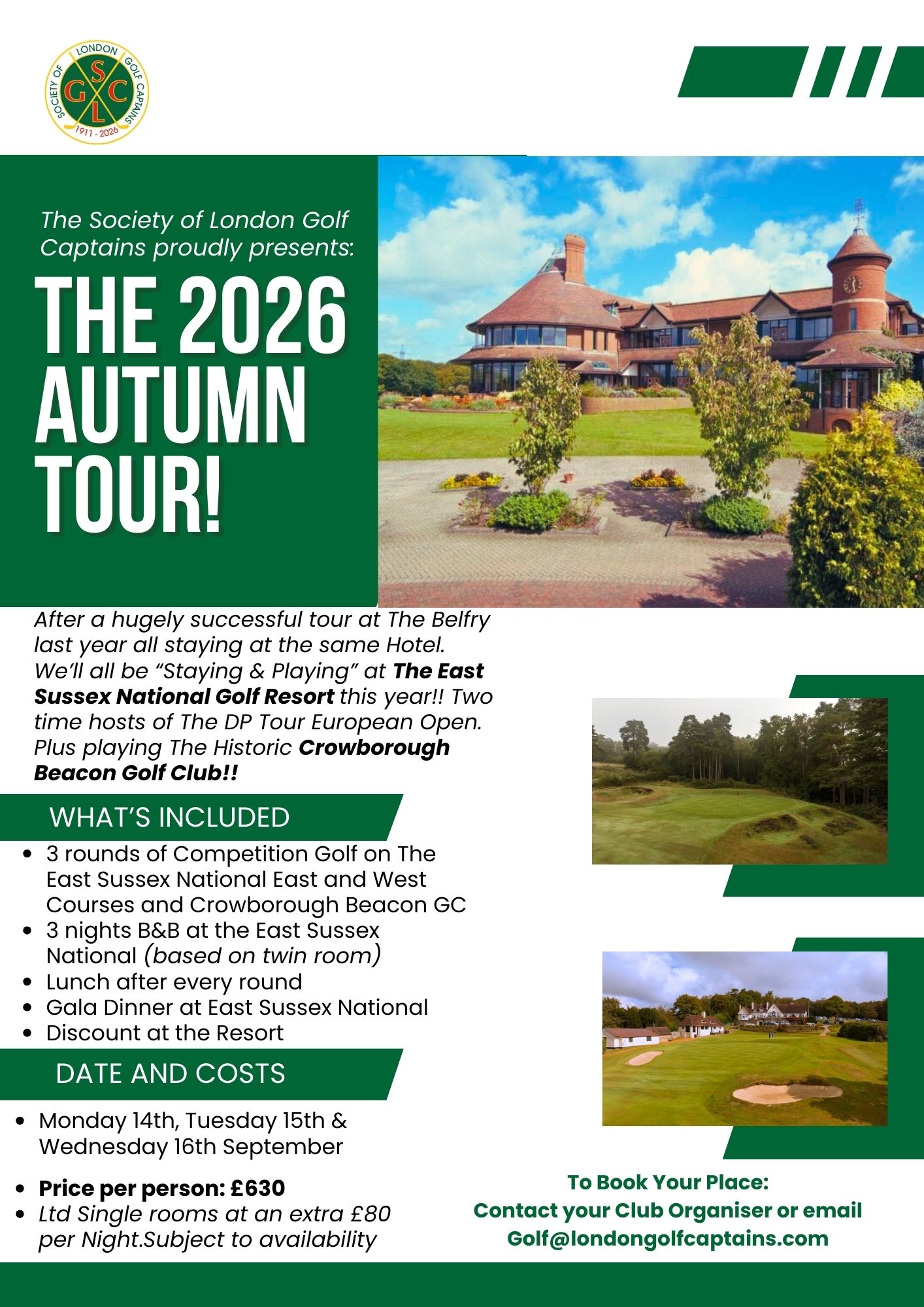 Contact your Club Organiser or email golf@londongolfcaptains.com to book your place
